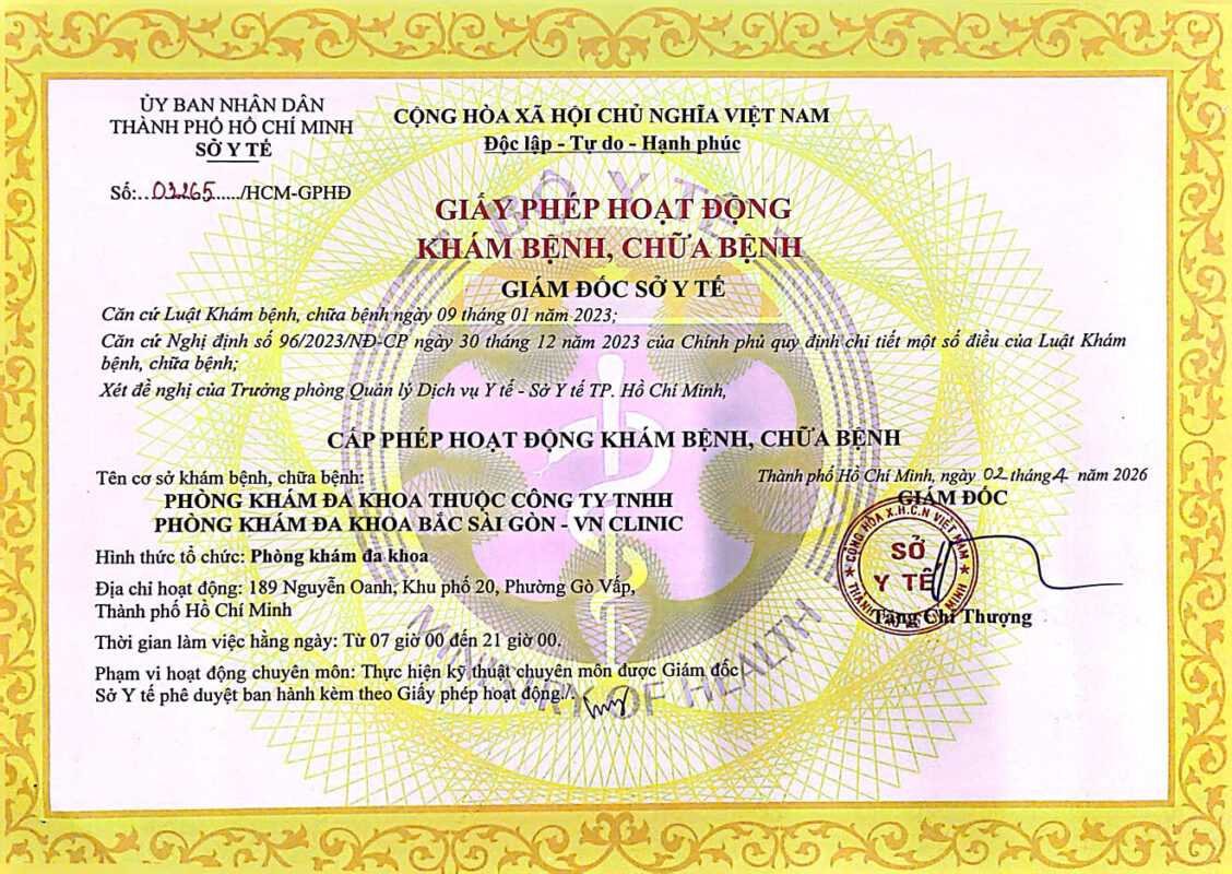 Phòng khám Đa Khoa Bắc Sài Gòn là cơ sở y tế uy tín tại TP.Hồ Chí Minh, chuyên cung cấp dịch vụ khám chữa bệnh đa chuyên khoa. Với đội ngũ bác sĩ giàu kinh nghiệm, tận tâm cùng hệ thống trang hiện đại, chúng tôi cam kết mang đến dịch vụ chăm sóc sức khoẻ toàn diện, an toàn và hiệu quả cho cộng đồng